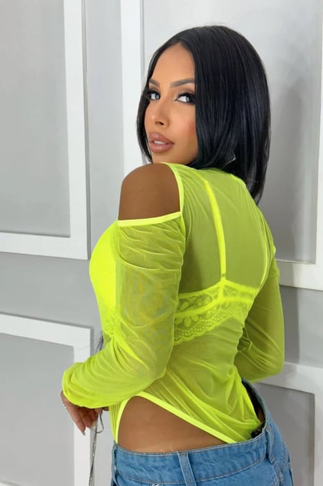 Com o Body de Renda Virginia,uma peça única que combina a delicadeza do tule e o charme da renda, realçando sua feminilidade com elegância e sofisticação. Além demanga longa com recortes que adicionam um toque moderno, este body possuialças reguláveis para um ajuste perfeito, acompanhado de umtop de renda exclusivoque promete não passar despercebido.